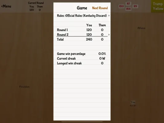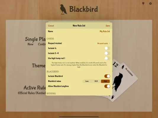 Play with two widely different rule sets (Kentucky Discard or Western Wyoming) or create your own set of rules to play with any of these options that can be on or off: