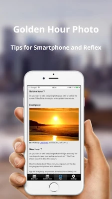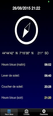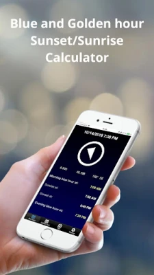 BlauTime shows you also when Golden hour/time occurs (moment to take incredible photo just before the sunset and just after the sunrise).