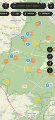 Secteurs & Parkings : Localisez instantanément les blocs et les secteurs de blocs sur une carte interactive couvrant toute la forêt.