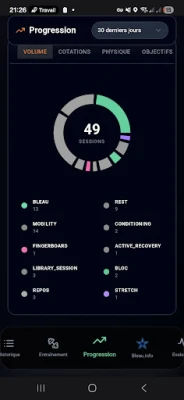 Sessions Complètes : Planifiez vos séances de bloc, de poutre, de renforcement musculaire, de yoga, etc ou de repos