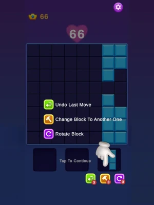 The features of "Block Blast: Master Puzzle":• The Bomb Props .• The Undo Props .• The Hammer Props.• The Rotate Props.