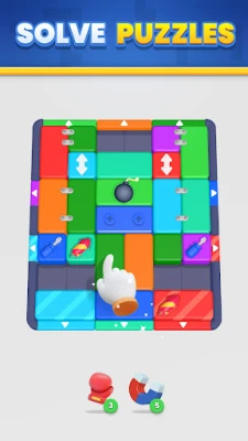 Use the magnet to clear all the blocks of the same color, and the powerful punch to remove blocks and obstacles