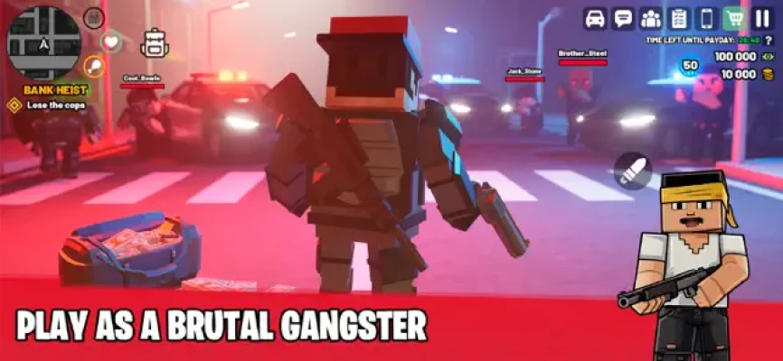 Get ready for a large-scale multiplayer game experience with BLOCK CRIME MAFIA: Online RP! This is more than just action game — it's a role-playing sandbox with a full open world where you build your own criminal empire in a city full of opportunities, risks and real players.