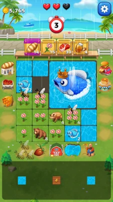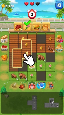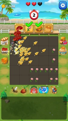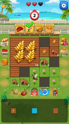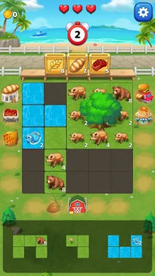 Solve the block puzzle skillfully, raise crops and animals, and harvest more resources. Respond to the requests of the residents, earn Gold, and acquire new items.