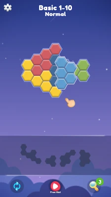 Drag and drop hexagonal blocks on the board to complete the puzzle. You can enjoy it with anyone, anywhere, anytime.