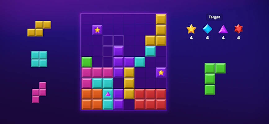 • Classic block puzzle games require strategic matching of rows or columns to clear colored block jigsaws.