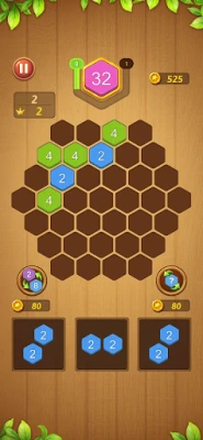 3. Hexa Puzzle: Players place hexagonal pieces, merge similar-colored ones to create larger numbers, and achieve higher scores.