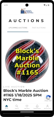 Block's Marble Auctions, located in Trumbull CT was established in 1989. The auction house conducts numerous sales a year with a focus on antique, vintage and contemporary marbles and marble related items. Our auctions feature an impressive selection including Antique Handmade, Antique and Vintage Machine Made, and Contemporary Handmade Marbles, as well as other items of interest to marble collectors. We have been featured numerous publications and tv and radio programs. Blocks Marble Auctions is the oldest and largest continuously running marble auctioneer. With the Block's Marble Auctions app, you can preview, watch and bid in our marble auctions from your mobile / tablet device.