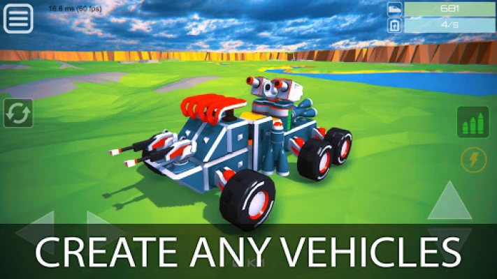 Build an unbreakable car. In the game, you can show your skills in building incredible vehicles, for this you have access to more blocks, such as wheels of different types and purposes, turrets, machine guns, rocket launchers, rocket engines, and armor. Fight with opponents on terra tech and win, victory will not be easy. The game has two types of events, the first is the derby and in this battle, every man for himself, the opponents will increase their weapon power and speed, so do not lag behind. In the second event, you will find a huge number of tests, here you need to be smart to craft a suitable vehicle for passing.