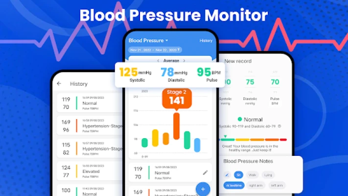 Blood Pressure - BP Monitor is a reliable, safe and fast assistant to help you easily record daily blood pressure data, monitor long-term blood pressure trends, and provide helpful lifestyle tips for your health. Blood Pressure App also provide a lot of blood pressure related science knowledge, so that you can understand and control blood pressure more comprehensively.