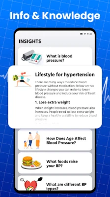 📊Track all health data: Get clear analysis of your blood pressure, blood sugar, weight, and body mass index trends to control your levels in a healthy range.