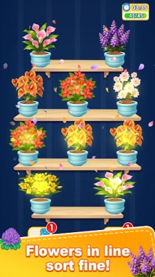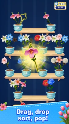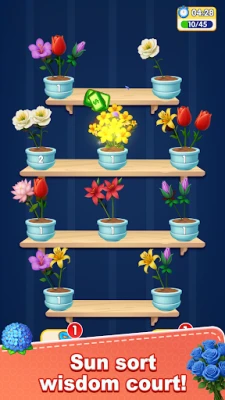 * At the start of each level, multiple transparent vases are displayed, each filled with a random mix of different flower types and colors in a messy stack. Players need to sort and organize all flowers via simple tap controls. * Core Operation: Tap to select a flower, then tap the target vase to move it. All actions can be completed with one finger, no complicated swipes required – new players can master the controls in just 30 seconds. * Sorting Requirement: Each vase can only hold flowers of the same type and color. Flowers must be stacked in order, and the top flower of the target vase must match the selected flower for a successful placement. * Elimination Mechanism: When a single vase is completely filled with identical flowers with no mixed varieties, it automatically triggers a beautiful bloom elimination animation, completing the sorting requirement for that vase and rewarding players with points and in-game items.