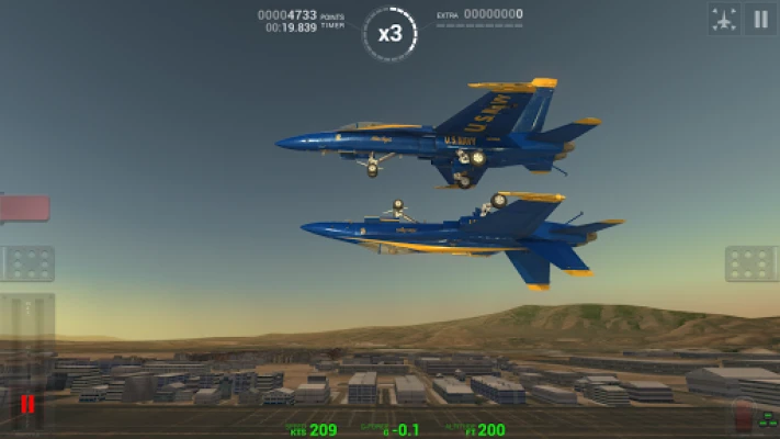 Plan your exhibition by composing real aerobatics with faithfully reproduced official scenarios: NAF El Centro, NAS Key West, Reno, Elmendorf AFB and Baltimore. Your ultimate goal is to complete all airshows! You can do this by executing the real maneuvers in sequence or randomly. You have the freedom of choice. For every maneuver, you decide what role to play: the #1 FLIGHT LEADER, one of the wings, the #2 RIGHT WING and #3 LEFT WING, the #4 SLOT or one of the soloists, the #5 LEAD and #6 OPPOSING SOLO.