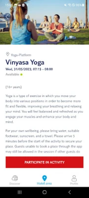 • Reservations for our various activities such as fitness classes, tennis or for relaxing moments in our private daybeds