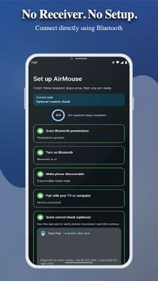 AirMouse connects directly through Bluetooth and does not require unnecessary permissions. Your data stays on your device.
