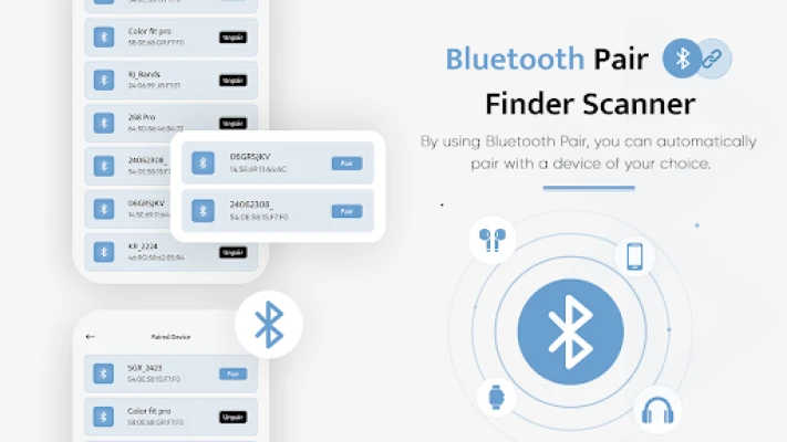 Bluetooth Pair: Finder Scanner is the best app for scanning a device and connecting devices. Now it's easy to connect any Bluetooth device, such as a Bluetooth headset or speaker, earbuds, and many wireless devices using this app. The Bluetooth Device Finder also has a feature that allows you to save previously connected Bluetooth devices for reconnecting later. Bluetooth Pair: Finder Scanner app provides you to pair the last connected Bluetooth device.