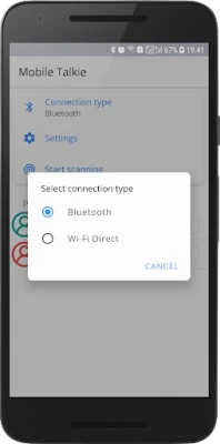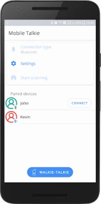 Mobile Talkie (previous name Bluetooth Talkie) is the mobile version of the Walkie-Talkie. The app supports two types of connection: Bluetooth and Wi-Fi Direct. No need for the internet. An easier way to start talking than Push-to-talk (PTT, P2T). Just connect several phones with launched Mobile Talkie and click on the action button to talk.