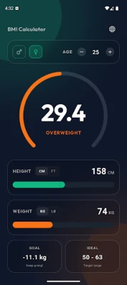 Designed with simplicity in mind, the app helps you quickly check whether you are underweight, normal weight, overweight, or obese based on standard BMI ranges.