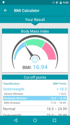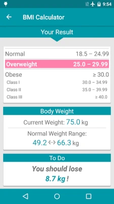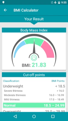 • BMI formula calculation based on recommendations of the World Health Organization (WHO)