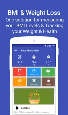 Along with BMI Calculator, this application also features Body Fat Percentage Calculator, Daily Calorie requirements, Ideal Weight Calculator and more.