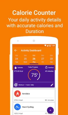 Activity tracker provides and logs the amount of calories burnt by the individuals. This also tracks and shows the progress percentage of daily calorie burning target.