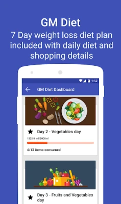 A brief and popular 7 day GM diet plan Information is provided. you can check your diet plan and check or uncheck the food menu included in your diet plan.