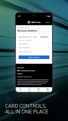 You can manage all your BMW, MINI, and Motorrad credit cards conveniently and securely from our new unified mobile app! Check your account balance, view account info, make payments, redeem rewards, and more!