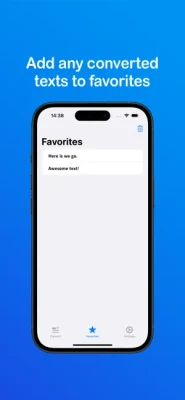 Key Features:• Convert plain text into a variety of unique styles• Choose from a selection of fancy fonts and alphabets• Easily copy your stylized text to use anywhere• Save your favorite conversions for quick access• Dark mode support for comfortable use day and night