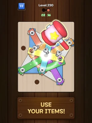 Use items like screwdriver, hammer, reset, and undo to solve complex puzzles!
