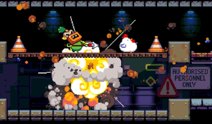 After a freak accident, a seemingly ordinary chicken becomes a bomb laying free range hero. Explore the versatile mechanic of laying bombs in this explosive exploration platformer.
