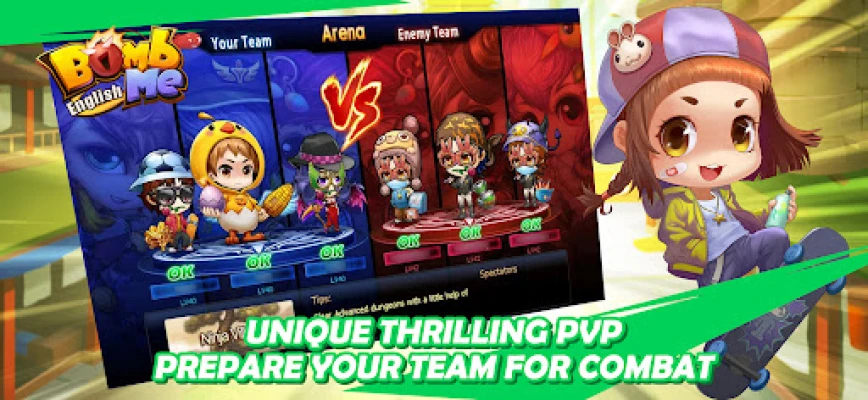 Bomb Me English is available globally! A great place for you to make friends around the world!