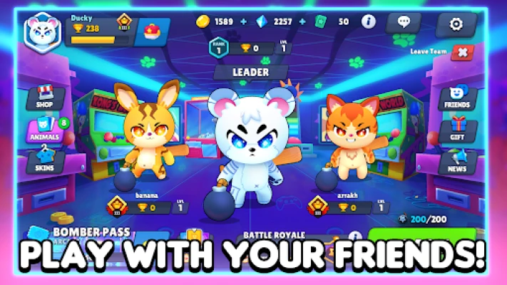 Unlock and upgrade cute animals with powerful abilities to fight in many different game modes! Collect unique skins, make friends, team up and let the battle begin!