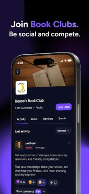 Create or join clubs that don’t just discuss books—they play, track, and grow together. See what others are reading and share your results.