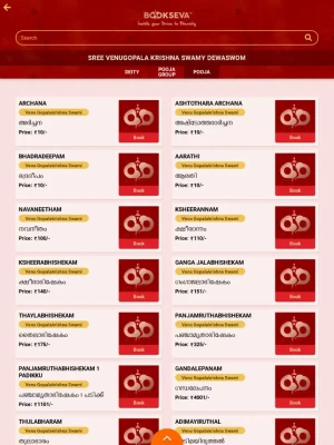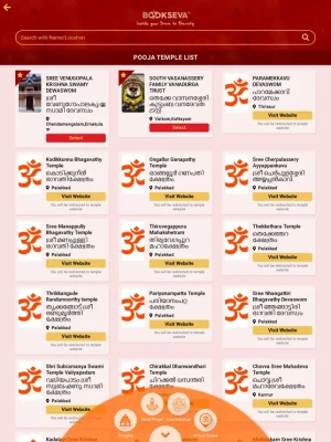 Devotees can search a Temple, Diety, or any special Pooja to be perfomed.