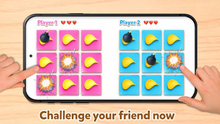 In this funny and smart tap-and-guess showdown, two players sit face-to-face and pick chips one by one. But beware — some chips hide explosive surprises! Guess carefully, tap wisely, and try to survive each risky round. One wrong choice and BOOM — the blast decides your fate!