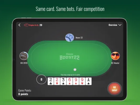 - In Head to Head games, both players start with the same 7 cards and plays against the same 3 bots. You collect as many points as possible. The player who finishes with the highest score wins.