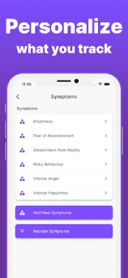 Add custom symptoms specific to your borderline personality disorder experience and see patterns emerge over time.