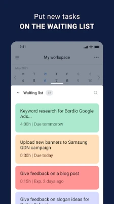 - Develop a habit of capturing all incoming tasks in Bordio. The waiting list is designed specifically for this purpose.