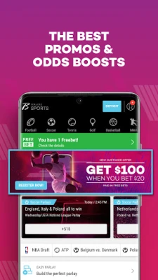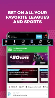 • Immerse in college sports betting: NCAA Football, Basketball and more.