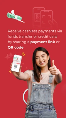 • Collect payments via fund transfer or credit card by sharing a payment link or QR code.