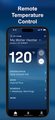 Control Temperature Settings from Anywhere. Adjust the water heater remotely from the mobile app. Easily customize daily or weekly schedules. Perfect for tech-savvy homeowners, landlords, business owners or people with multiple homes.