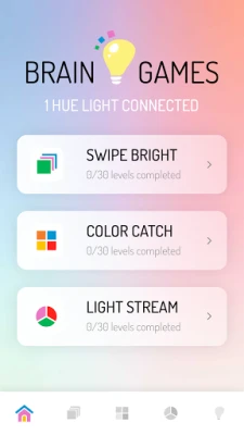 It’s time to use your Philips Hue lights to the max! In these interactive Hue brain games your lights will take over control and determine your overall game play experience. Pay attention to the state of the light(s) in your room, while training your memory, attention and concentration. Three different brain games can be connected with your Philips Hue lights with in total almost 100 levels of increasing difficulty. All games focus on color, so pay attention to the color of your Hue lights and be aware that your lights can change their state unexpectedly!