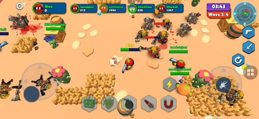 There are a lot of character skins for your selection: Tomatoman, Tulip, Pearman, Dahlia, Super Chilli, Cactusman, and Pumpkinman. Each skin has its special beneficial ability. For example: Super Chilli Skin will help you to move faster, Pumpkinman skin will help you to increase armor, etc.