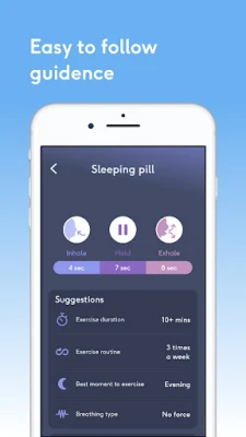 • Very easy to use: simply let the animated breathing wave guide you.