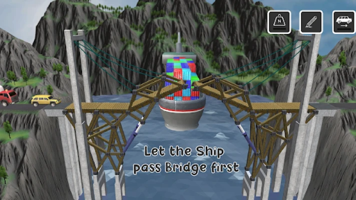 This game makes you think about designing a strong bridge so that several cars can pass even some trucks. design carefully so that the bridge that you design does not collapse when passed by a vehicle. Apart from that, there are many other challenges, Example: the bridge before being crossed by cars and trucks will be passed by ships or crossed by planes first.
