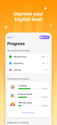 You can study from 10 minutes a day and within a month you will know up to 200 words and feel more confident in English. The app monitors the correct completion of tasks and awards rewards only for successful regular learning.