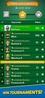 Don't miss the opportunity to experience the adrenaline of the Tournaments! Take on the challenge, take part in tournaments and become the undisputed champion of BRISCOLA TRADIZIONALE