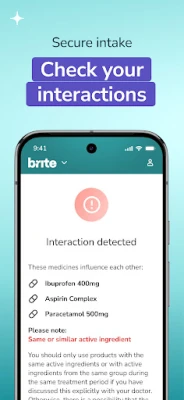 - Keep track of interactions between your medications and have brite actively alert you to interactions.