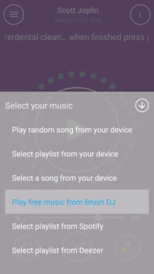 Brush DJ works with either a manual or electric toothbrush and allows you to set reminders