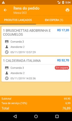 Lançamento de pedidos, extratos e fechamento de contas, controle de comandas pagas para liberar saída do cliente